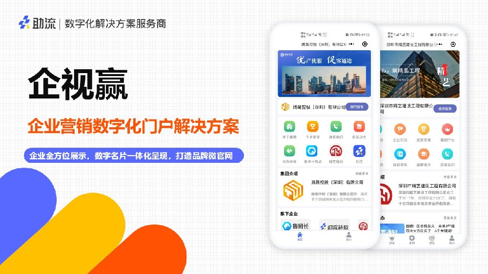 企視贏讓每個企業(yè)輕松擁有專屬的企業(yè)門戶小程序,為企業(yè)打造專屬的數字舞臺。企業(yè)可以充分展現自身優(yōu)勢,吸···